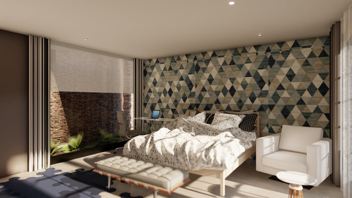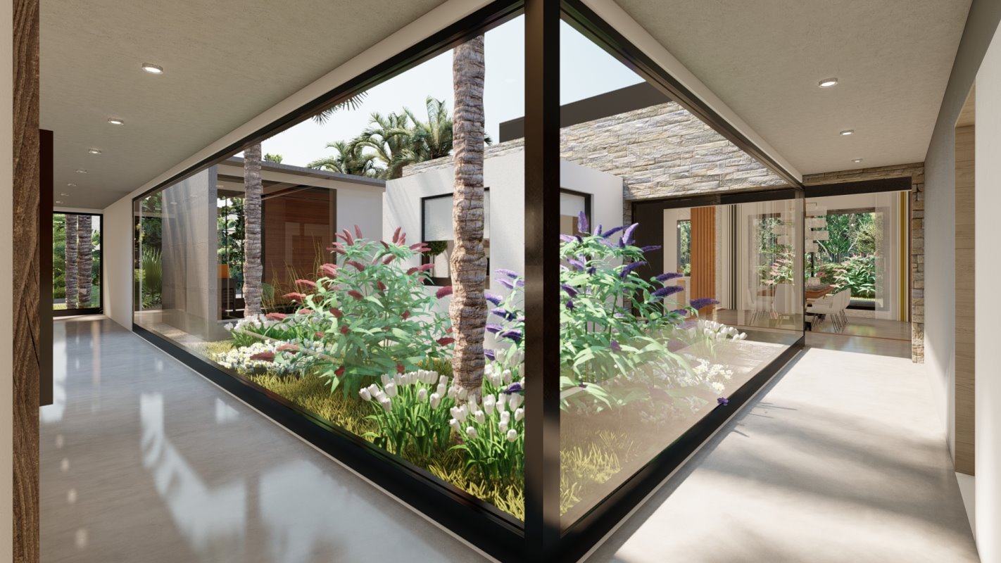 La vegetación hace parte integral del diseño, estando presente en grandes ventanas y patios de luz.