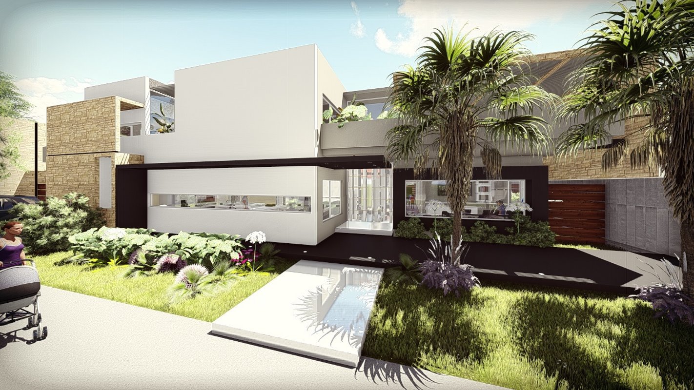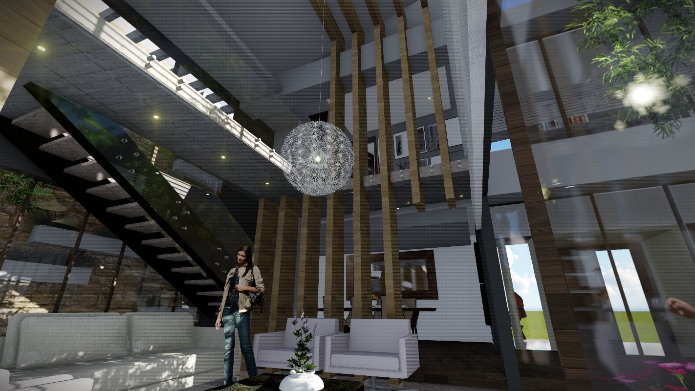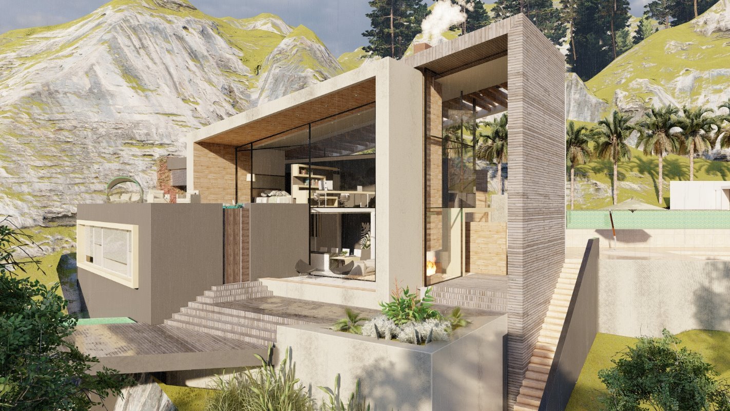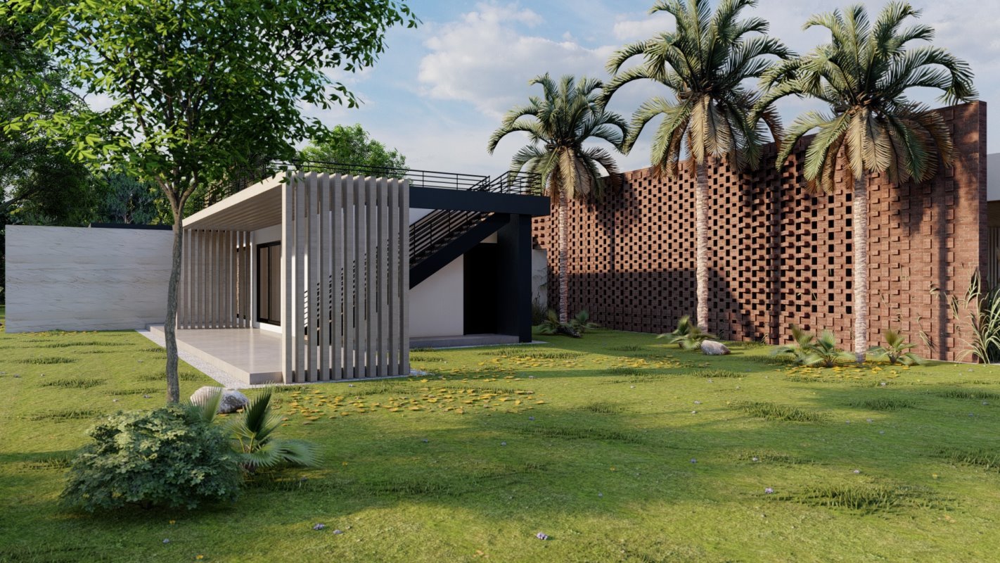 Es diseña a partir de un patio central que distribuye los espacios interiores de la casa, siendo lo mas importante para el cliente las actividades sociales. Diseñada en un lote de 550m2 al interior de un condominio y cuenta con 250 m2. En el primer nivel una doble altura en living con escaleras en estructura metálica que dan servicio al segundo nivel.