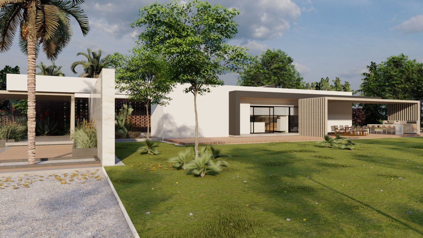 De estilo mediterráneo tiene una área construida de 350m2 para familias que les gusta la espacialidad y la conexión con la naturaleza.
