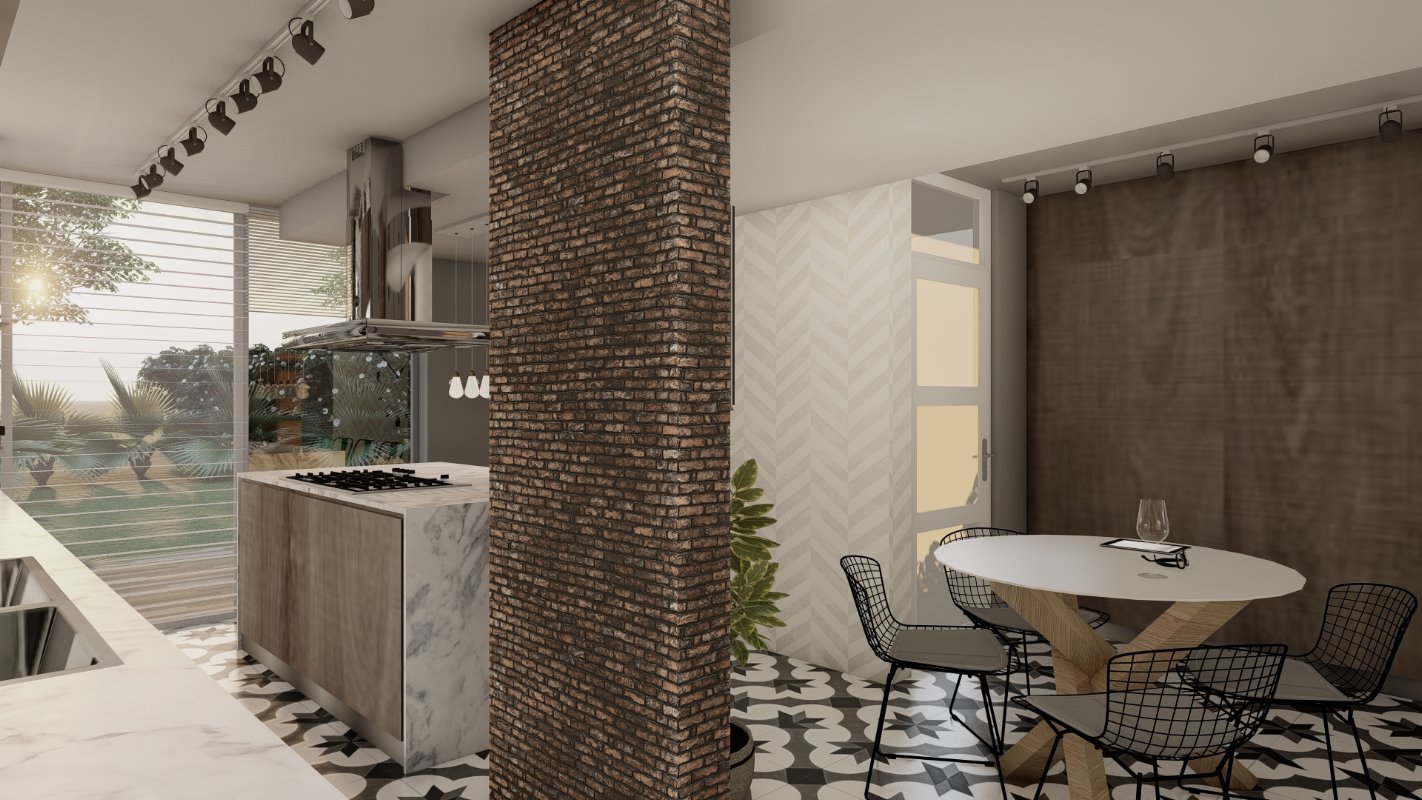 Programa: Cocina con isla, hall de acceso, logia,