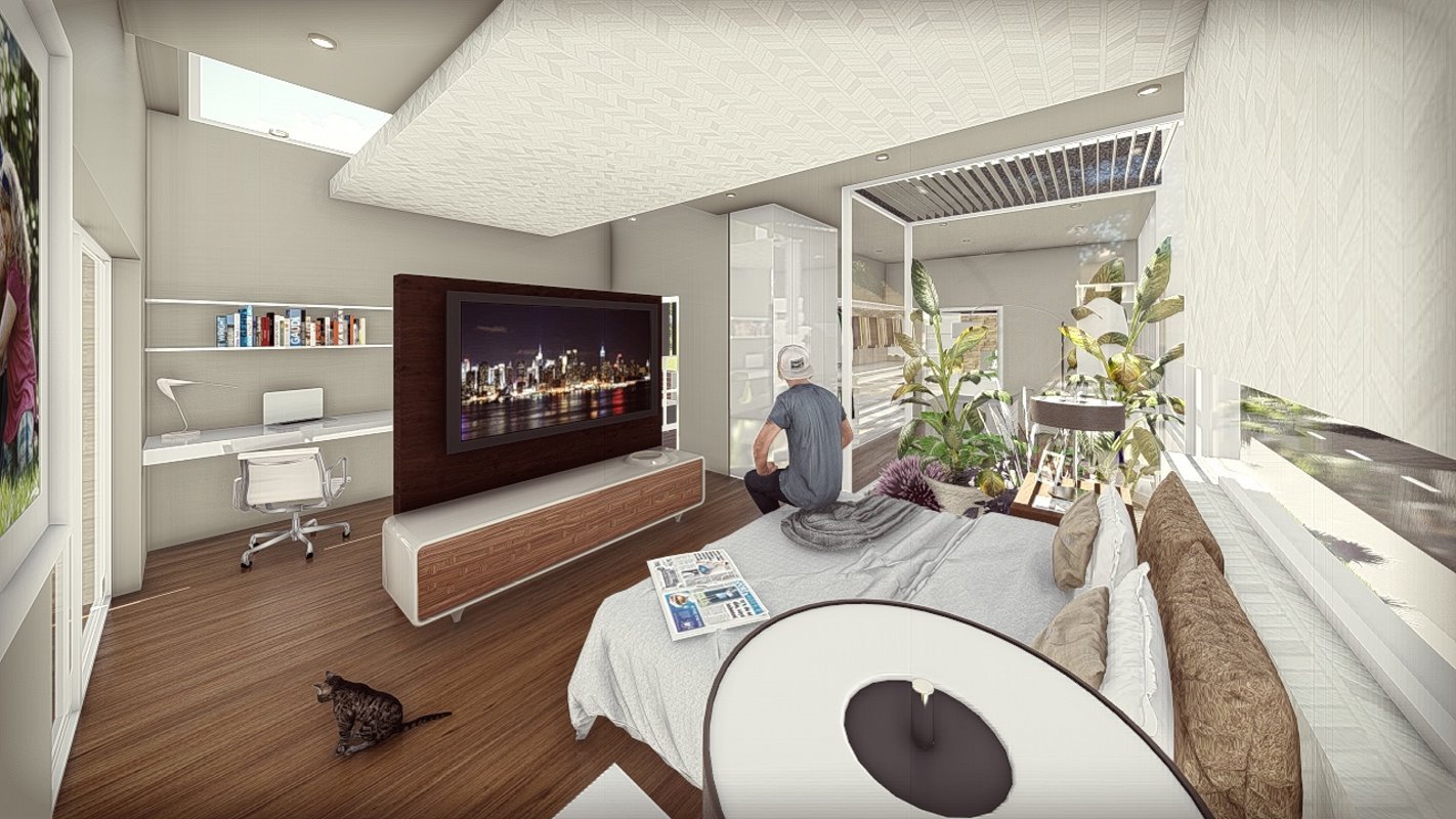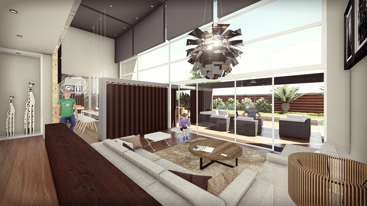 La casa se diseña en medios niveles, donde resalta un espacio de talleres que el cliente quería tener dentro de la construcción. El living de habitaciones como espacio articulador.