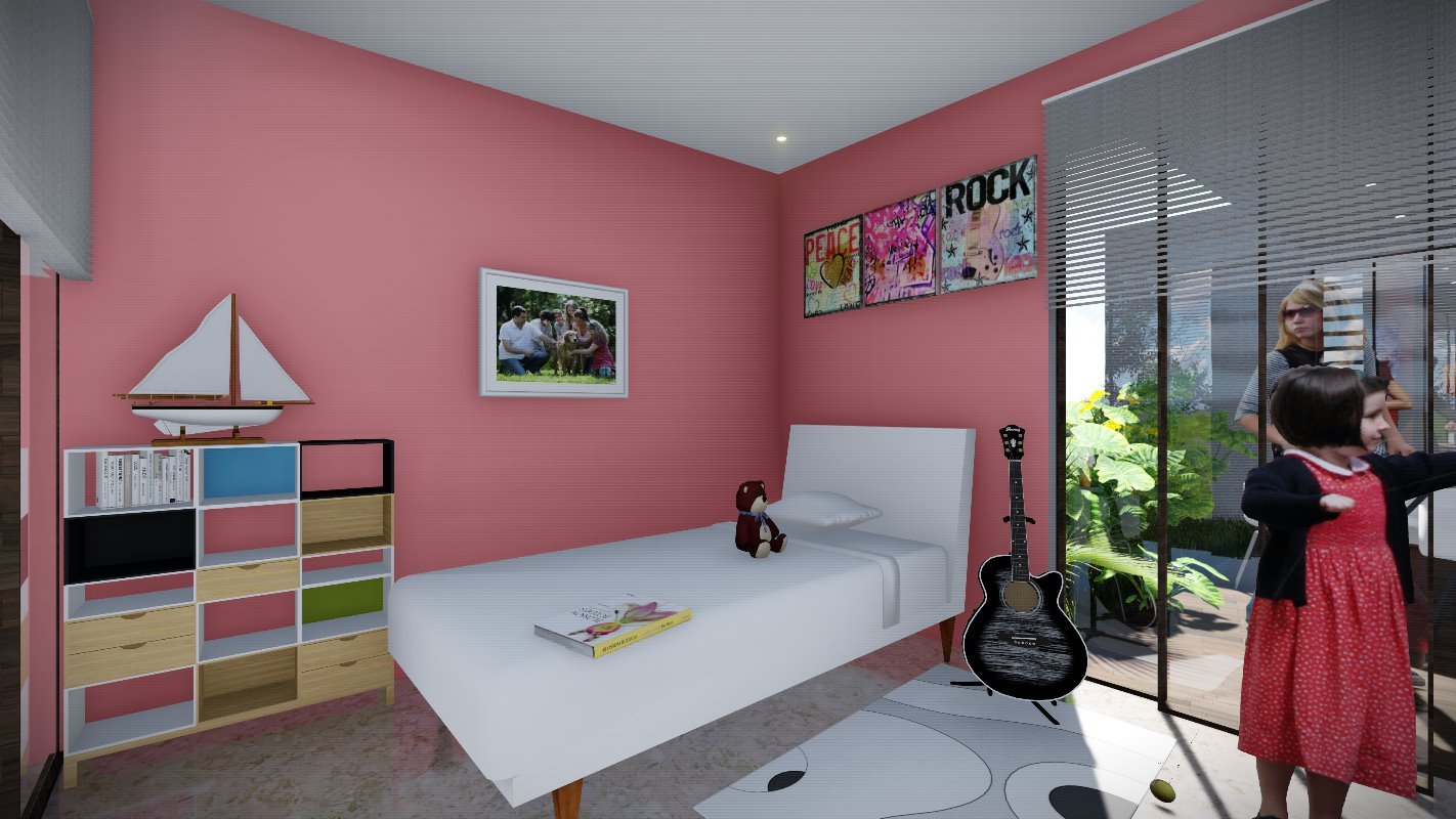 En el segundo nivel encontramos las habitaciones de la casa con terrazas para cada una y un espacio de estudio para los hijos.